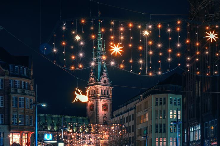 Vom 21. November erstrahlt die Mönckebergstraße, mit all seinen besonderen Bauwerken wie dem Levantehaus oder der Petri-Kirche, in neuer festlicher Adventsstimmung.